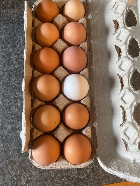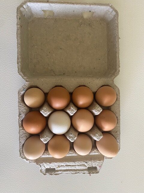Fresh yellow yolk eggs laid by hormone – and antibiotic – free, pasture raised chickens.